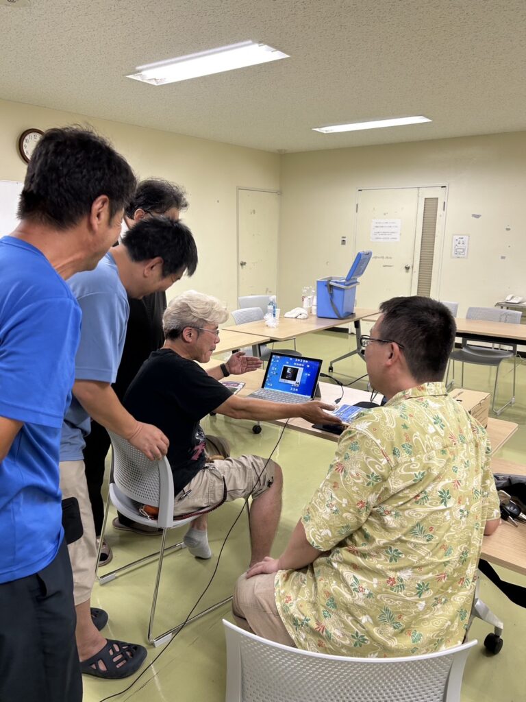 これまで主流だったコピー機のように使うタイプのスキャナーではなく、デジカメのように写真を撮る方式の最新スキャナーを実演しました。